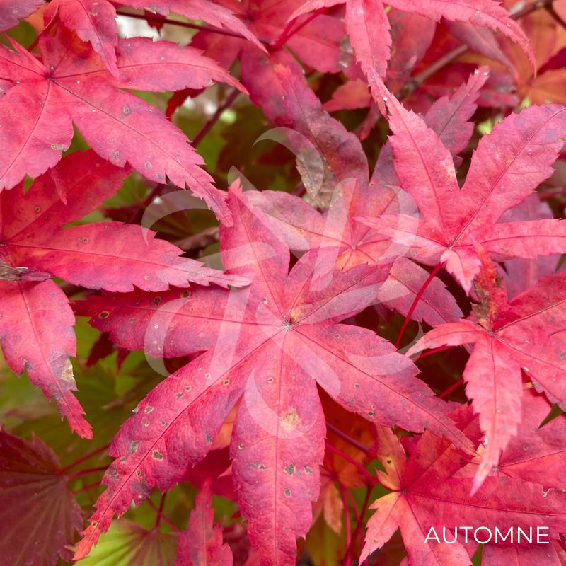 En automne, le feuillage de l’Érable du Japon ‘Beni Maiko’ se pare de magnifiques couleurs rouges et oranges.