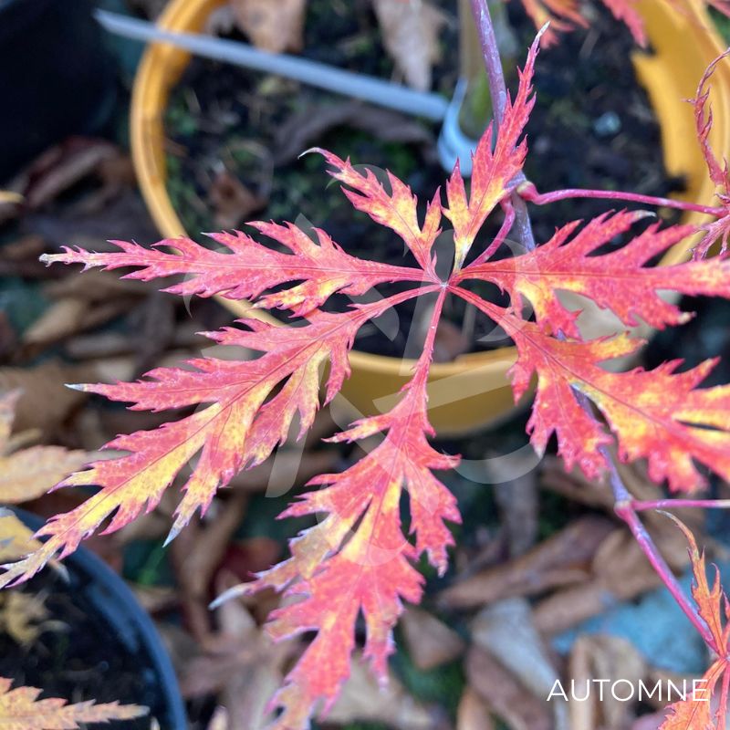 Rare et magnifique Érable du Japon dissectum ! Les feuilles de l’Acer palmatum ‘Kaga-sudare’ sont très finement incisées.