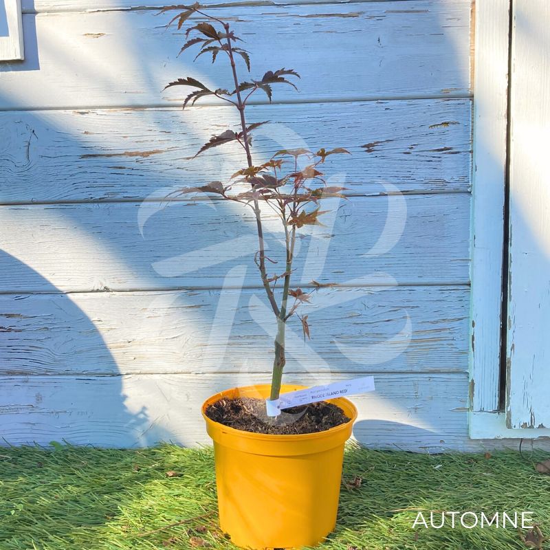 L’érable du Japon ‘Rhode Island Red’ a une forme très particulière, pouvant atteindre 1,5 mètre de hauteur et 2 mètres de largeur en 10 ans.