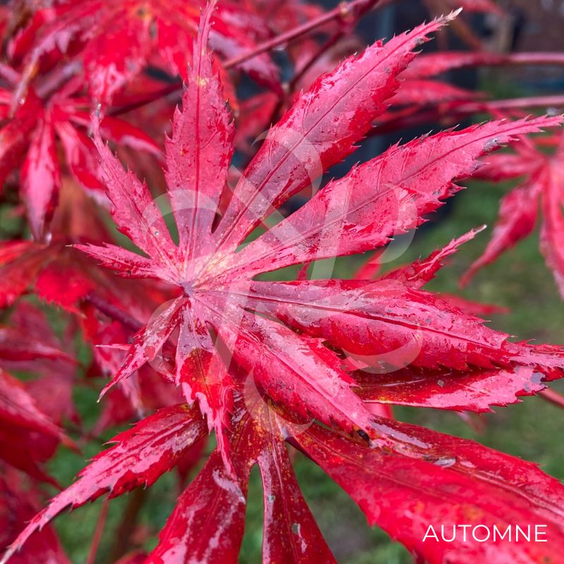 D’un riche pourpre rougeâtre au printemps, les feuilles de cet Érable du Japon conservent leur couleur extraordinaire jusqu’à la fin de l’été et deviennent d’un rouge cramoisi vibrant à l’automne avant de tomber au sol.