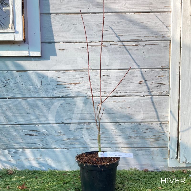 L’Acer palmatum ‘Yezo nishiki’ est un arbre droit et étalé qui peut atteindre 4m de haut.