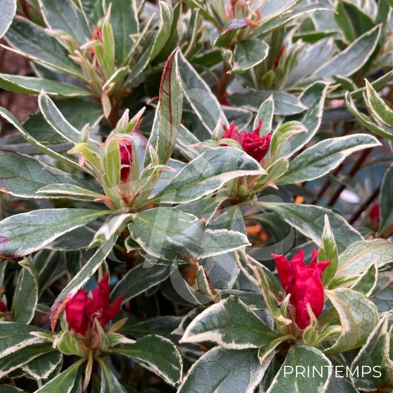 L’Azalée du Japon ‘Silver Sword’ est une variété panachée avec de superbes feuilles vert-blanc/crème et fleurs rose / rose cerise, abondantes au printemps (avril-mai).