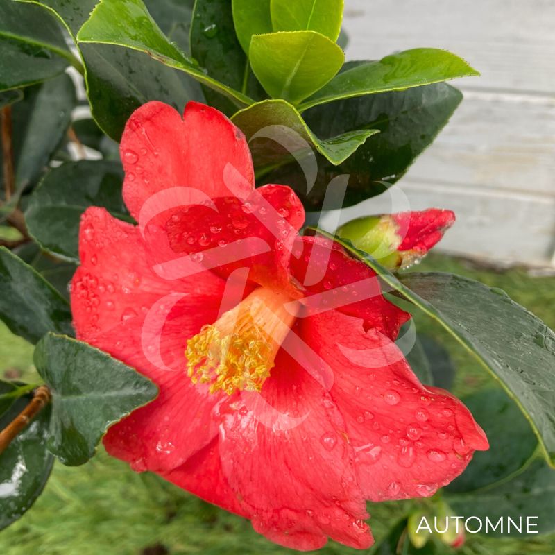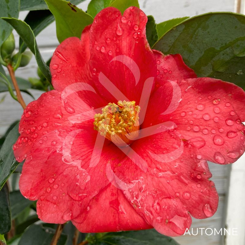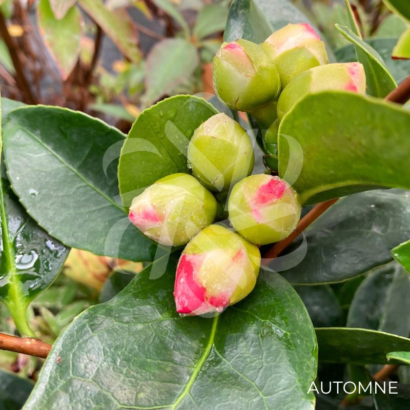 Ses fleurs, simples à semi-doubles, dévoilent des pétales d’un rose vif à rouge profond, au cœur doré lumineux. Cette floraison presque ininterrompue est rare chez les camélias, habituellement printaniers, ce qui fait de ‘1001 Summer Nights’ une variété innovante et recherchée. Elle apporte une touche d’exotisme et de couleur durable au jardin, à une période où peu d’autres arbustes fleurissent encore.