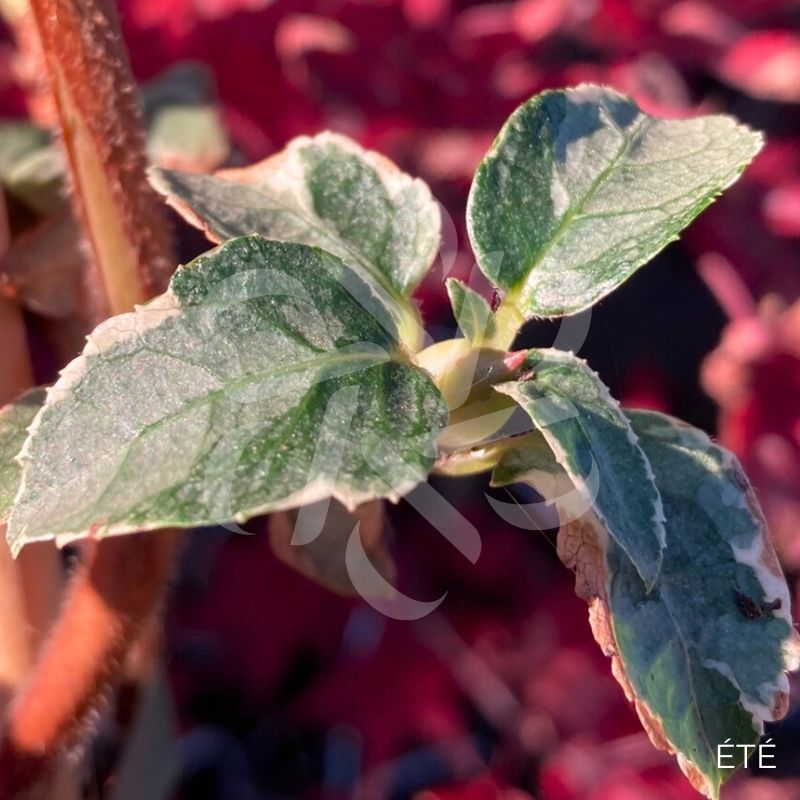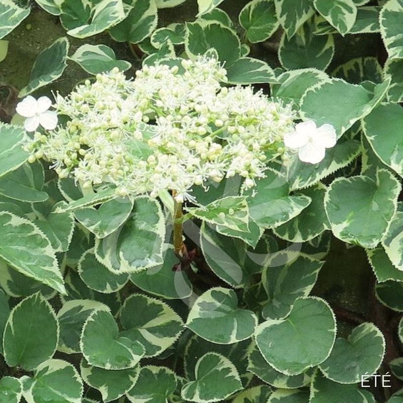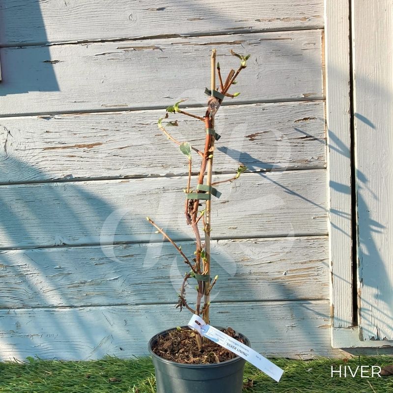 L’hortensia grimpant ‘Silver Lining’ est une variété très appréciable dû à son feuillage panaché de gris et de blanc se mélangeant avec sa magnifique floraison blanche (fleurs de 15cm) légèrement parfumée.
