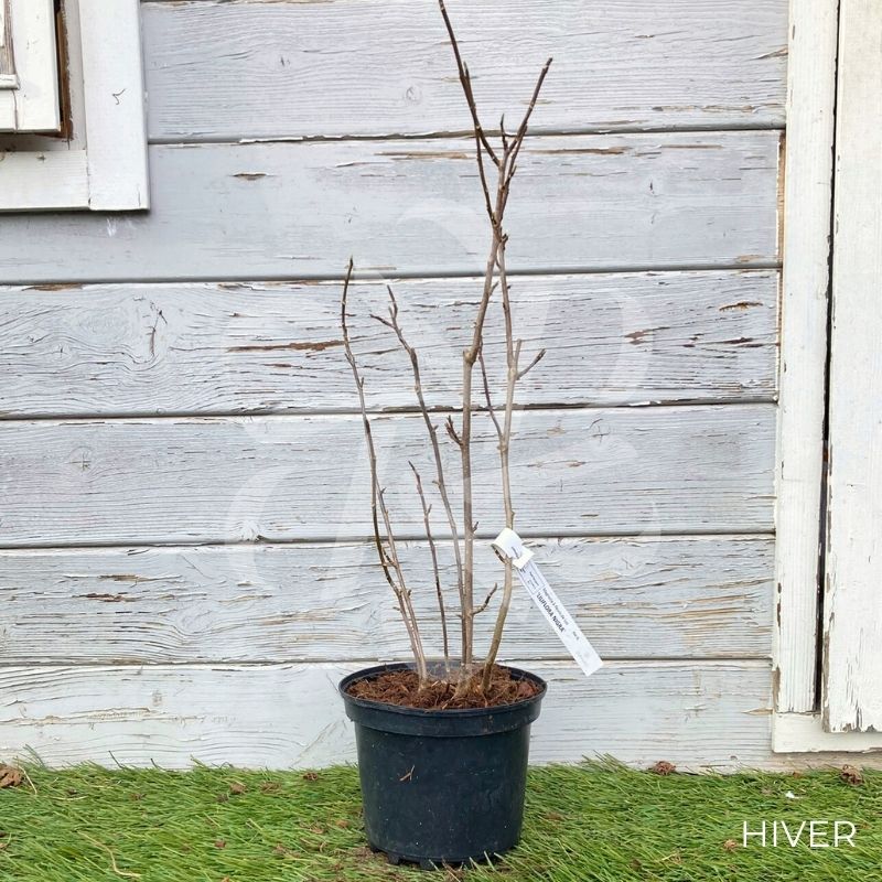 Dès le milieu du printemps, avant même l’apparition du feuillage, cet arbuste se couvre de boutons fuselés d’un pourpre lie-de-vin intense, presque noir.